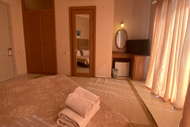 Doğanın yeşiliyle çevrili Standart Kara Manzaralı Odamız, sakin ve huzurlu bir atmosferde konaklamak isteyenler için ideal. Modern olanaklarla donatılmış olan odalarımız, şıklığı ve rahatlığı bir arada sunar. Ege’nin doğal güzelliklerine yakın olmanın keyfini çıkarın.